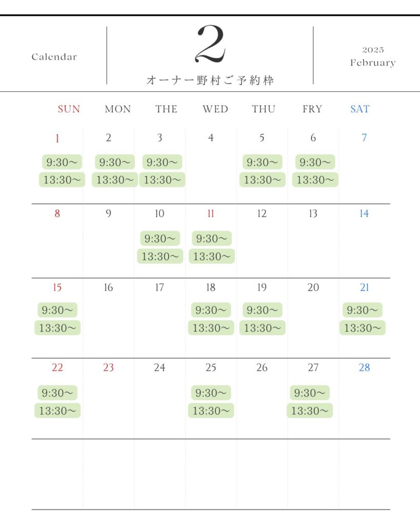【2月のご予約・オーナー野村枠】は1/18(日)20:00から受付スタート⏰「ホットペッパービューティー」から✨
